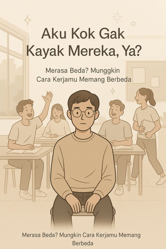 Pernah nggak, kamu merasa aneh sendiri di tengah orang-orang? Temanmu rajin nyatet setiap pelajaran, sementara kamu lebih suka mendengar. Ada yang semangat kalau kerja bareng, tapi kamu justru lebih fokus saat sendirian. Di momen seperti itu, mungkin kamu bertanya, “Kok aku beda, ya?” Padahal, bukan kamu yang aneh—bisa jadi memang pola kerja otakmu berbeda. Setiap orang punya cara berpikir dan belajar yang unik. Dan itu sah-sah aja.