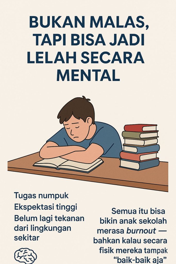 Ketika seorang siswa terlihat diam di depan buku pelajaran, bukan berarti mereka malas atau tidak peduli. Di balik kepala yang tertunduk dan ekspresi datar, bisa jadi ada kelelahan mental yang tidak terlihat. Tugas yang menumpuk, tekanan akademik, dan harapan dari lingkungan bisa menjadi beban yang diam-diam menggerogoti semangat mereka. Bahkan jika secara fisik tampak “baik-baik saja”, bukan berarti kondisi mentalnya juga demikian.
